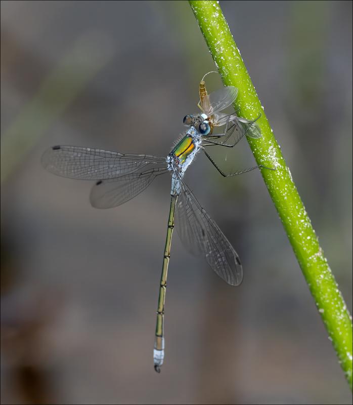 Emerald damselfly with prey