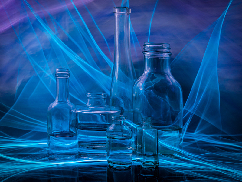 Bottles dressed in blue